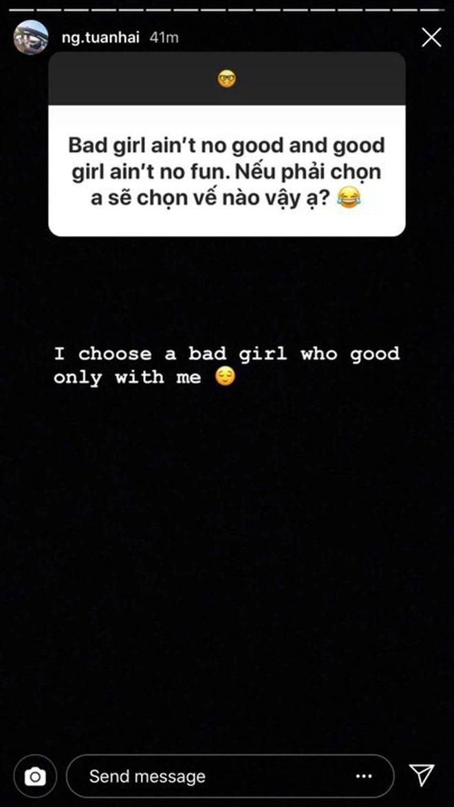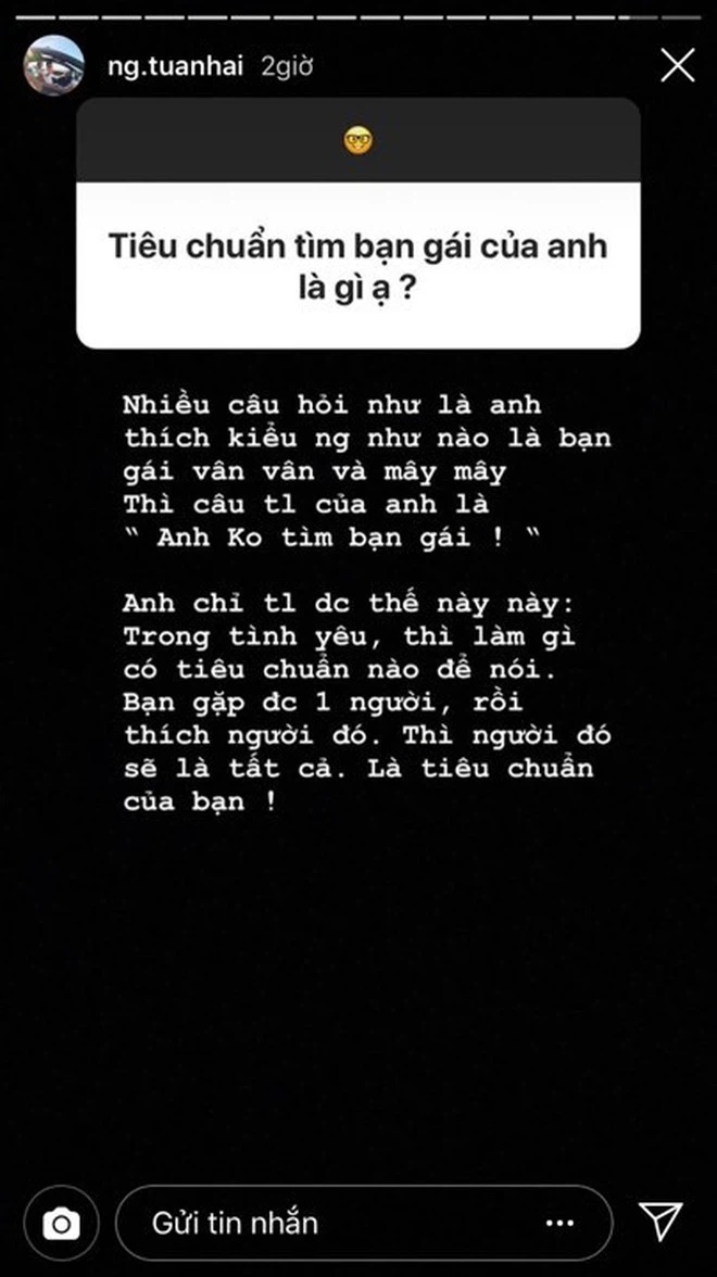 Tuấn Hải cũng bật mí rằng anh chàng thích một cô gái "hư" nhưng sẽ đối xử tốt với riêng mình. Và có vẻ như thiếu gia đã tìm thấy cô gái cần tìm bởi gần đây anh chàng thường xuyên đăng ảnh giấu mặt cùng người ấy.